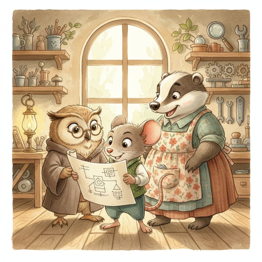 Max Mouse loved his friends, Bella Badger and Oliver Owl. When their big project became too tricky, Max found a clever way to help, proving that smart thinking and kindness make everything better.