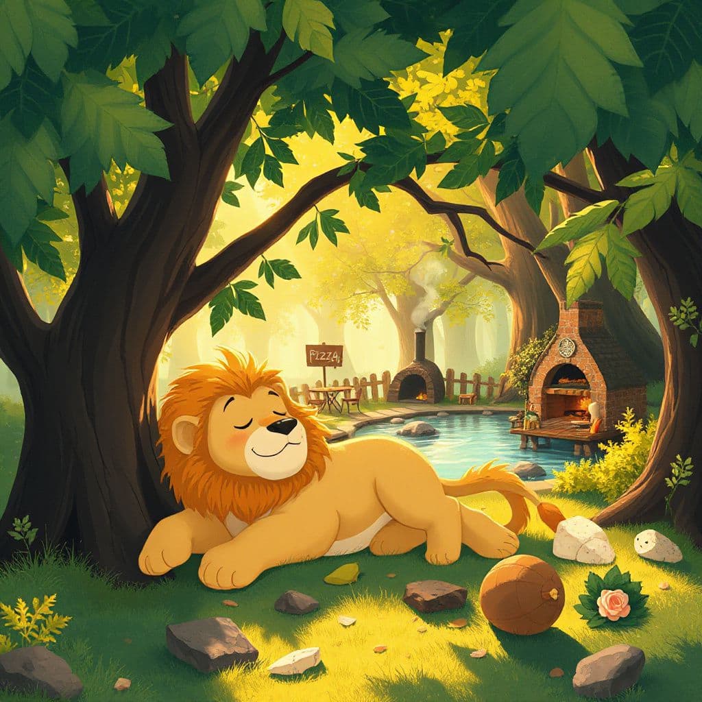 In a bustling magical forest, Leo the lion loves naps more than work. But when a delicious scent leads him to a pizza cafe, he discovers that the sweetest rewards often require a little bit of effort.