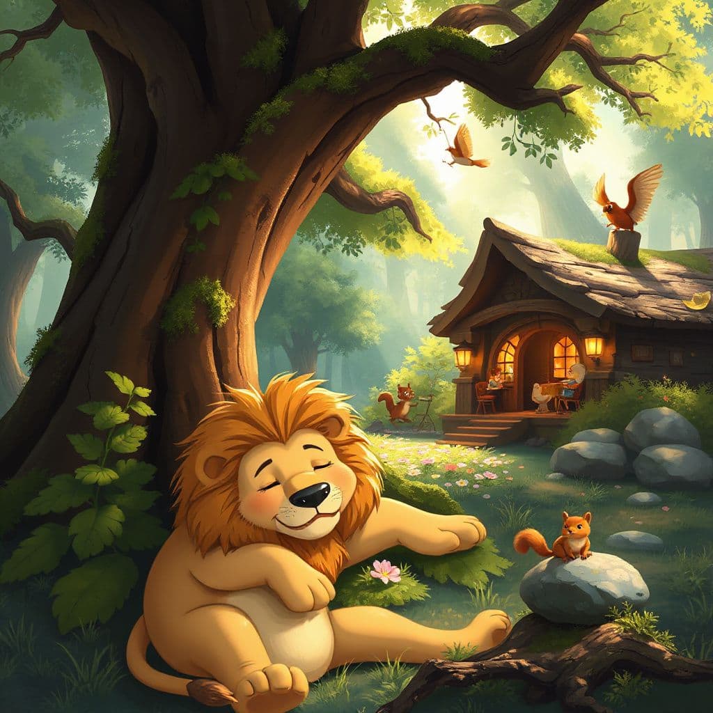 In a bustling magical forest, a sleepy lion named Leo learns a heartwarming lesson: the best rewards are those earned with a little effort and a lot of heart.