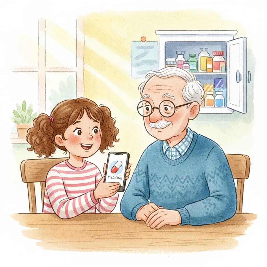 Join Grandpa Joe as he discovers a helpful way to remember his medicine, with a little help from his granddaughter and a clever app!